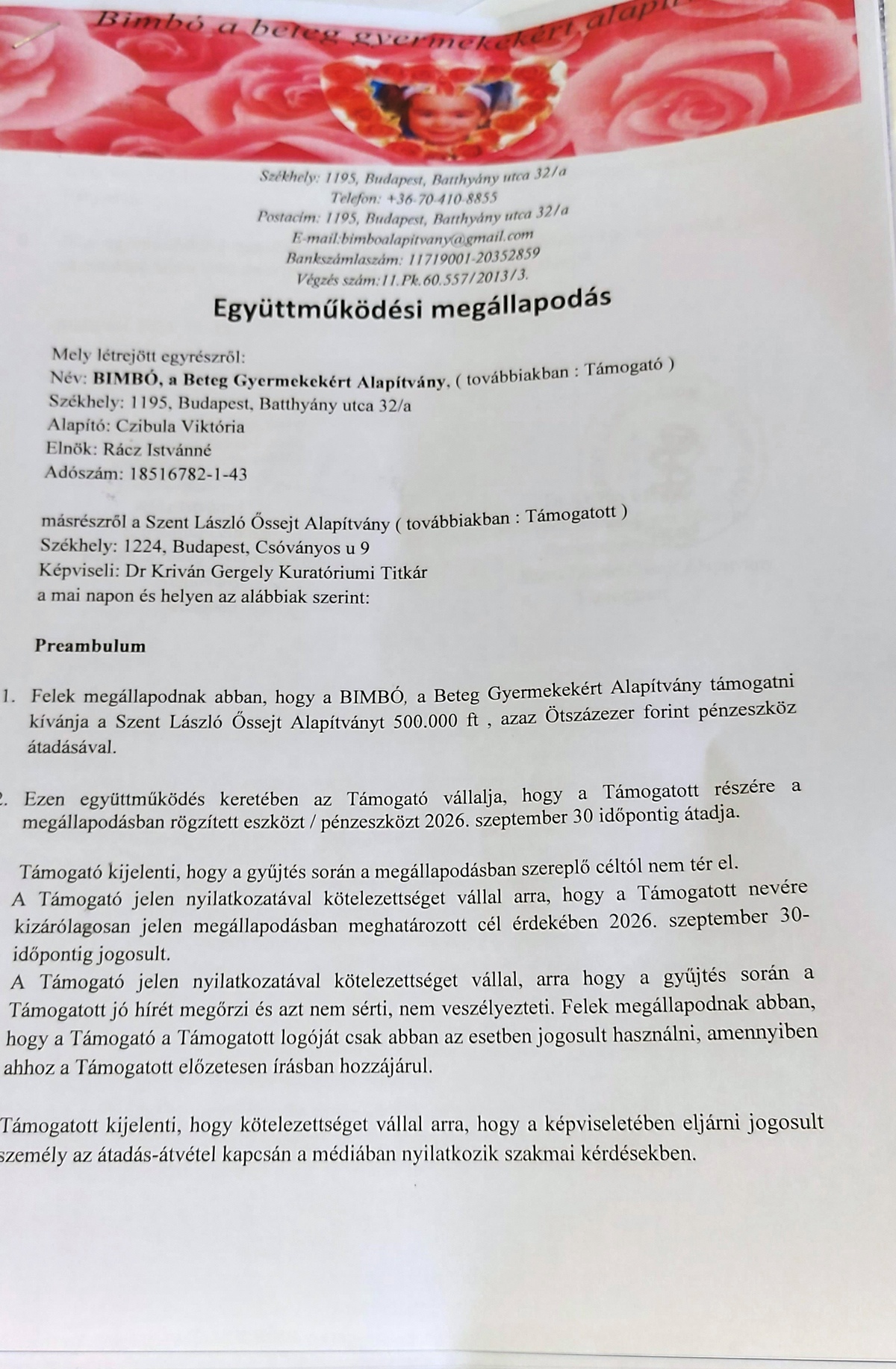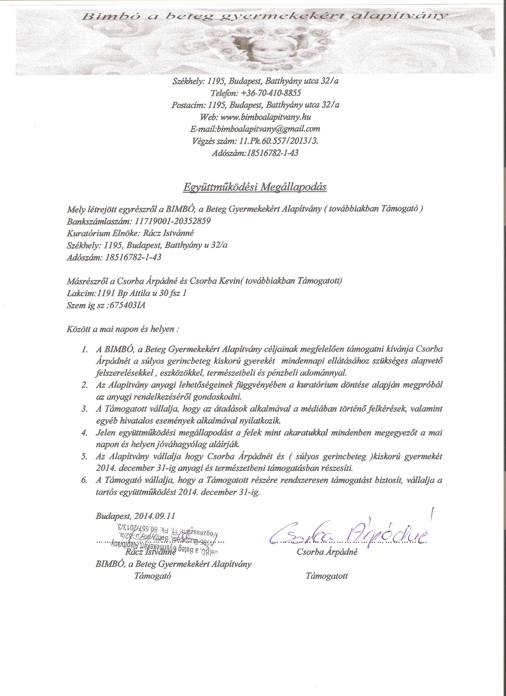 - Bokréta Gyermekotthon Együttműködési Megállapodás